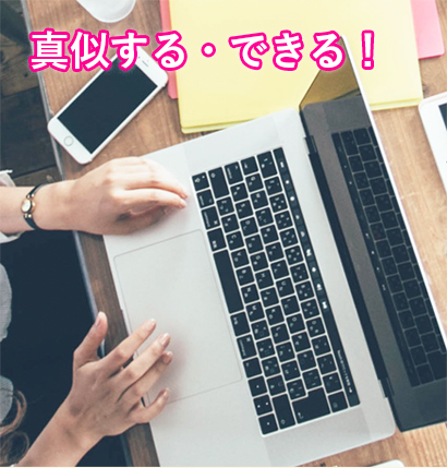 パソコン操作のマネを行なうことで、「難しい事も出来てしまう」のです。普通の教室では、「インストラクターの説明を聞いて理解してから、パソコンを操作する」又は、「テキストを読んで理解してから、パソコンを操作する」という形です。時に理解するのに多くの時間がかかってしまい、難しい・出来ないと諦めてしまいます。
